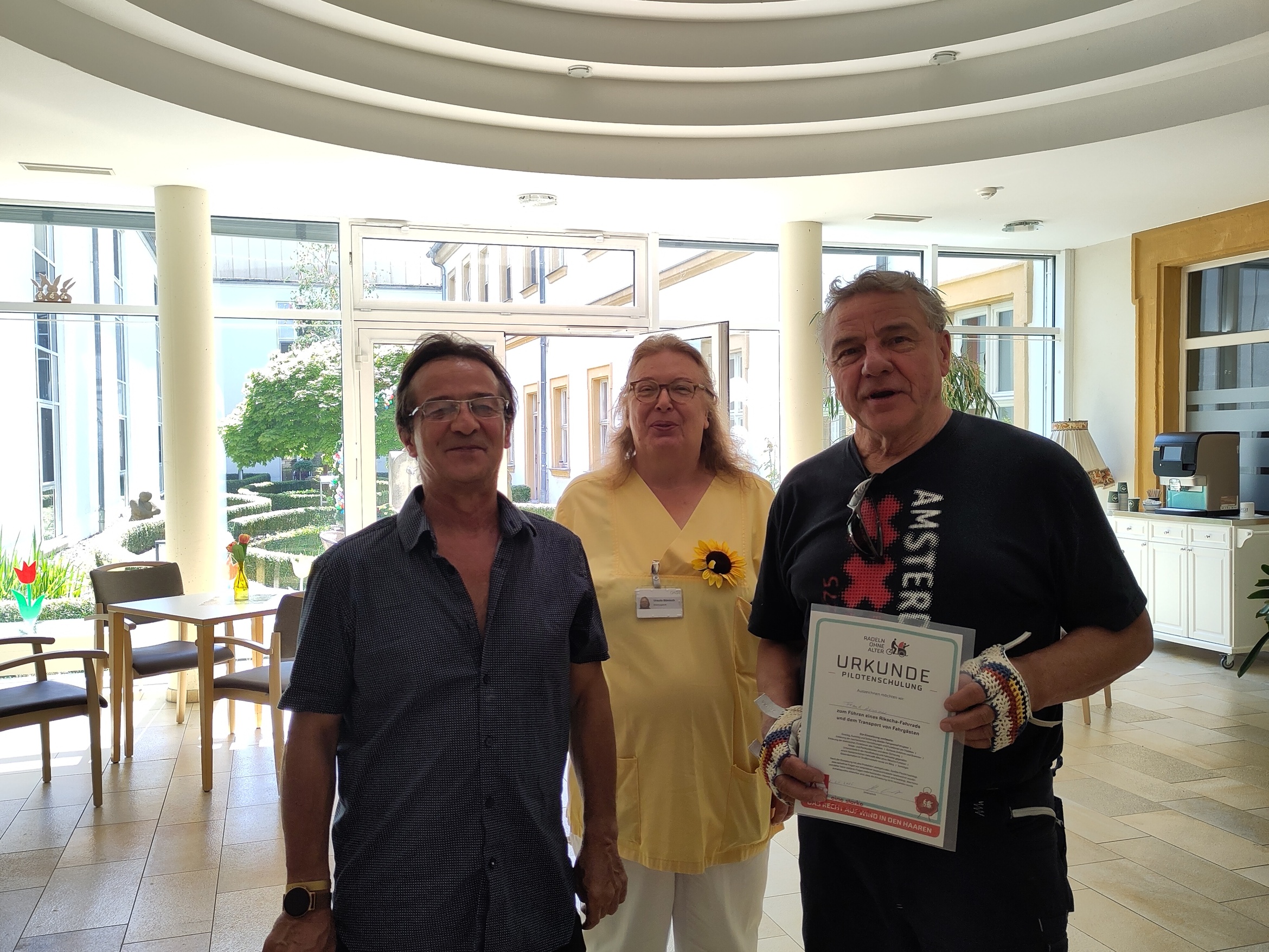 Im April 2025 haben Andreas Roschlaub, Margot Spindler und Ndri Goore aus Ebern, Frank Rössner für Baunach die Ausbildung zum Piloten gemacht und dürfen ab jetzt Rikscha fahren. Sie wurden in die Rikscha eingewiesen und in das Fahren der Rikscha. Anschließend konnten sie alleine oder mit einem anderen Piloten üben und zum Schluss eine Abschlussfahrt machen. Da es bei allen gut gelaufen ist, erhielten sie von Rudi Reinhart eine Urkunde. Rudi Reinhart bedankte sich für die Bereitschaft und wünschte den Neuen viel Freude am Fahren.